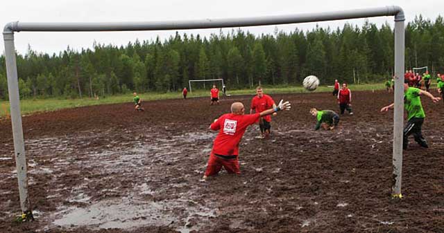 Футбол настолько популярный вид спорта, что с ним знакомы чуть ли не все мальчишки с детства. Но 1989 г. появилась игра, которая сделала реальностью многие детские мечты. Болотный футбол, так называется этот вид спорта, придумал лыжник Эса Ромппайнен. Откуда у него появилась такая мысль доподлинно неизвестно, но принесла она много радостных моментов большому количеству людей. С 2000 г. стали проводиться чемпионаты в Финском Хюрунсалми, а в этом году необычный вид спорта завоевал популярность и в России. Соревнования проводятся в Ленинградской области в одной из ближайших деревень. Размер поля примерно 60 метров, правила не сильно отличаются от стандартного футбола.