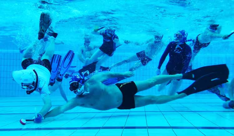 Традиционный хоккей известен во всём мире. Даже хоккей на газоне стал завоёвывать огромную аудиторию спортсменов, желающих внести разнообразие в свою спортивную жизнь. Однако существует разновидность этого вида спорта, которая ломает все стереотипы. Подводный хоккей был придуман Британскими дайверами в 1950 г. Популярность данного вида спорта возросла благодаря экономии на экипировке и полном отсутствии ограничений по возрасту и массе тела. Играют чаще всего в бассейне глубиной 2 метра и размерами 25х15 метров. Из снаряжения используют только ласты, маску и трубку. Вместо клюшки используют специальную палку, сделанную из пластика длиной 30 см. Ворота крепко установлены на дне бассейна, и имеют размер в 3 метра. Шайба тоже не обычная, её вес для более комфортной игры составляет 1,5 кг, Матч разделён на 2 тайма длительностью в 15 минут каждый.